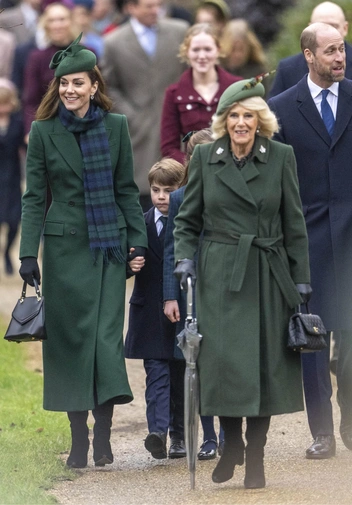 К слову, семья Уэльских тоже соответствовала общей цветовой гамме. Под стать шарфу Кейт, в похожие оттенки были одеты Уильям, Джордж и Луи, они появились в темно-синих пальто. А маленькая Шарлотта надела клетчатый плащ в изумрудных тонах.