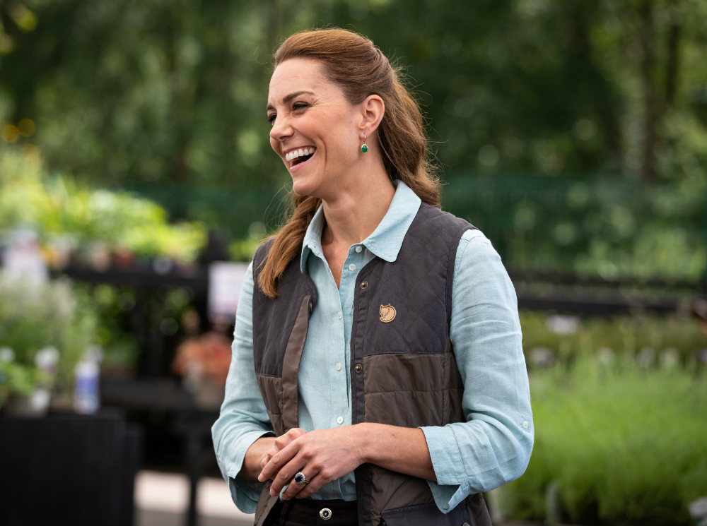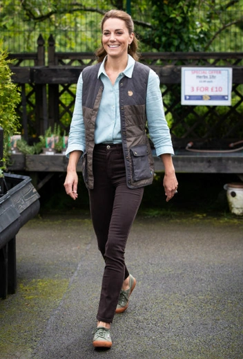 С марта Кейт нельзя было увидеть на публике - она проводила локдаун вместе с семьей в фамильном поместье Анмер-Холл, которое им с Уильямом преподнесла королева в качестве свадебного подарка. Теперь же появились первые снимки герцогини после карантина. На них она предстает в весьма непосредственном образе: на ней бледно-голубая рубашка, охотничий жилет марки Fjallraven, коричневые брюки и кроссовки Superga цвета хаки. В таком виде Кэтрин посетила Fakenham Garden Center.