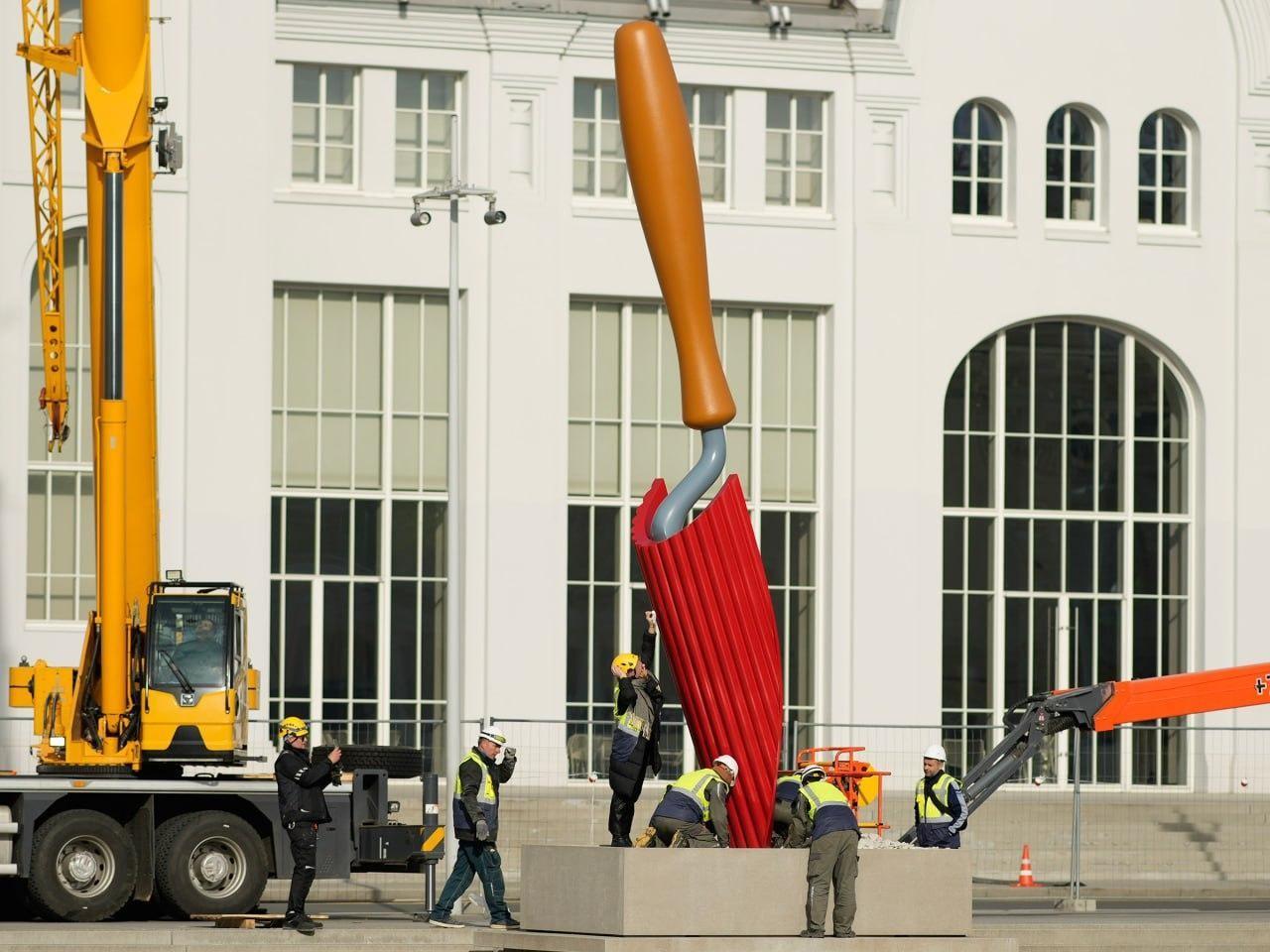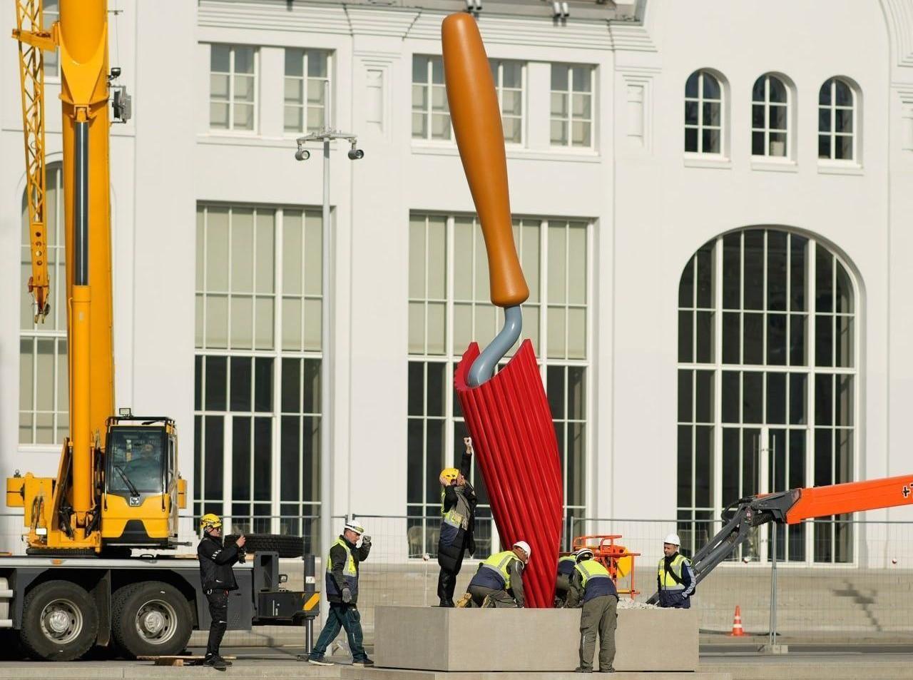 Установка скульптуры «Садовая лопатка» у здания «ГЭС-2».