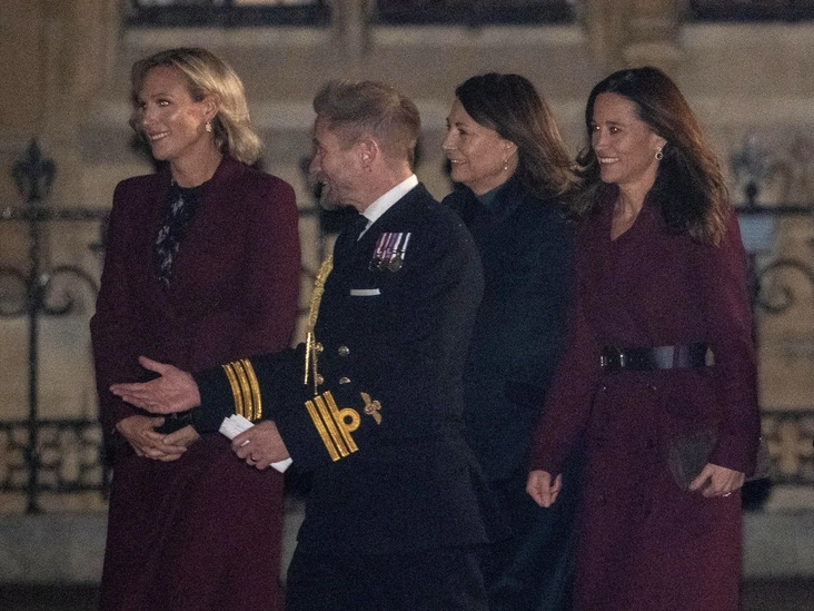 Сразу же после выхода сериала герцогиня Кэтрин, принцесса Шарлотта, Зара Тиндалл и Пиппа Миддлтон появились на рождественском концерте Together At Christmas в Вестминстерском аббатстве в нарядах практически идентичного яркого винного оттенка.