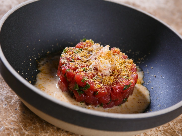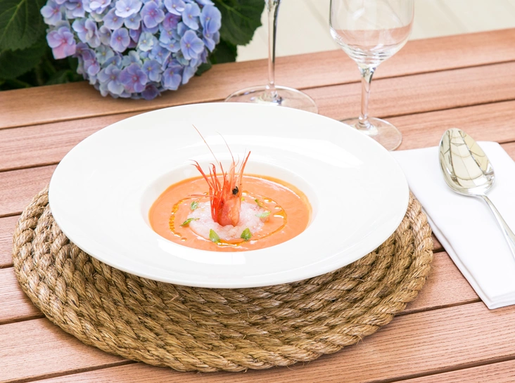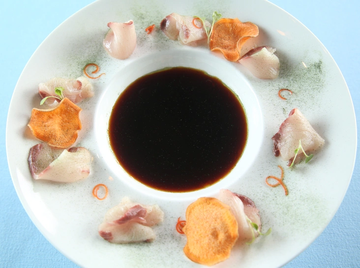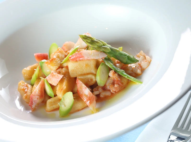 Первым делом, конечно же, рыбу или морепродукты. Даже если вы зашли на кофе с десертом, не откажите себе в удовольствии сперва попробовать карпаччо из дальневосточной креветки, сбрызнутой оливковым маслом и соком лайма, тартар из тунца в японском стиле, гаспаччо с северной креветкой или же ньокки с дальневосточным крабом и ароматным чесночным соусом.