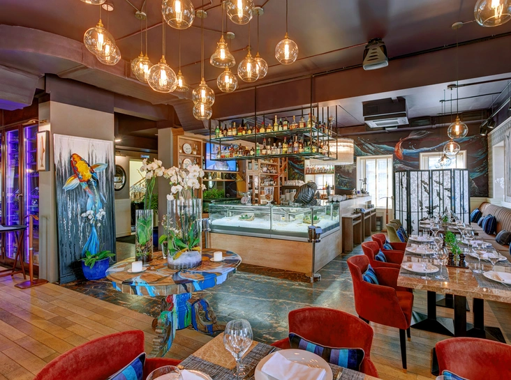 Как рассказывает пресс-служба ресторана, в «Пескаторе» интерьер продуман так, чтоб все в нем было «о рыбе». Витражи на окнах, обои, картины, столы, аквариумы, – словом, зайти в заведение и не попробовать блюдо из рыбы просто невозможно. О морской тематике напоминает и расположение ресторана на набережной Москва-реки, где в теплое время года и вовсе работает веранда, спроектированная по образу белоснежной яхты.