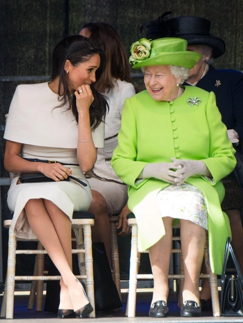 14 июня 2018 года стало знаменательным днем в семье Виндзоров. Королева Елизавета лично тепло поприветствовала Меган как королевскую особу во время ее первой встречи без принца Гарри, а совместные фотографии монарших особ на открытии моста The Mersey Gateway не обсудил только ленивый. Рядом Королева и Меган выглядели как настоящие подруги, беззаботно смеясь и постоянно наклоняясь друг к другу, чтобы прокомментировать происходящее. Как потом признался герцог Сассекский, его жена и бабушка сразу нашли общий язык за счет любви к… собакам (читайте также: «Как жили и чем питались любимые корги Королевы (поверьте, им можно только позавидовать)»).