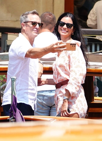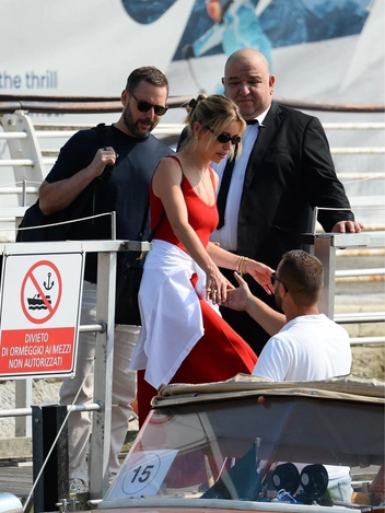 Кроме того, папарацци успели сфотографировать новобрачных по пути на праздничный ужин, который пройдет в Palazzo Brandolini 26 июня. Для этого вечера невеста выбрала черное винтажное платье Alexander McQueen из коллекции весна-лето 2003. Джефф же появился в довольно сдержанном образе — темных брюках, пиджаке и белой футболке.