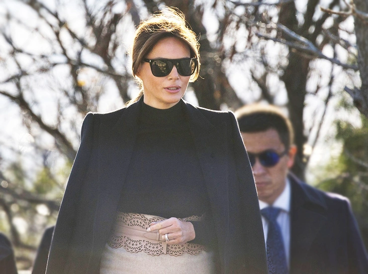 Удивительное дело, но для прогулки по стене и для встречи в зоопарке Мелания отказалась от каблуков, заменив их любимыми балетками от Christian Louboutin. Неожиданно, учитывая практически патологическую любовь первой леди к острым шпилькам!