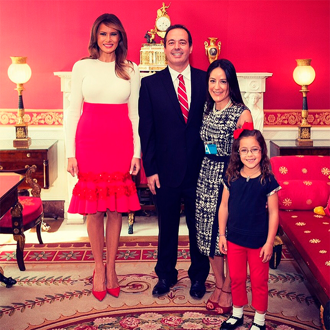 Еще одна любопытная деталь – на этот раз первая леди на некоторых фотографиях запечатлена с широкой голливудской улыбкой. Хотя обычно миссис Трамп предпочитает на официальных мероприятиях появляться с отрешенным лицом, а порой и тяжелым взглядом (некоторые шутят, что Меланию сильно раздражает необходимость долго находиться в обществе мужа). Может, все дело в том, что вчерашнее мероприятие совпало со Всемирным днем улыбки?