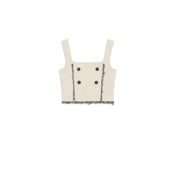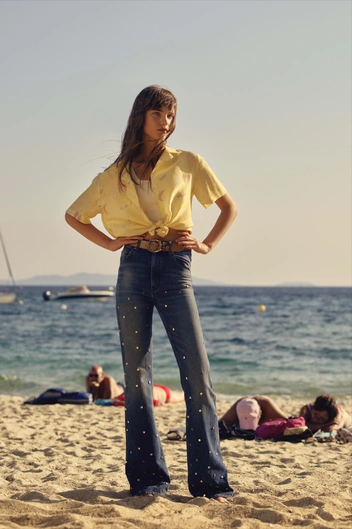 Эту палитру взяли за основу и дизайнеры Sandro. В новой коллекции можно найти актуальные вещи, неподвластные времени. Бежевый пиджак, голубые прямые джинсы, куртки из денима и топы с шортами, в которых хочется отправится в путешествие — все эти предметы гардероба с уверенностью можно миксовать и получать правильные и стильные сочетания.