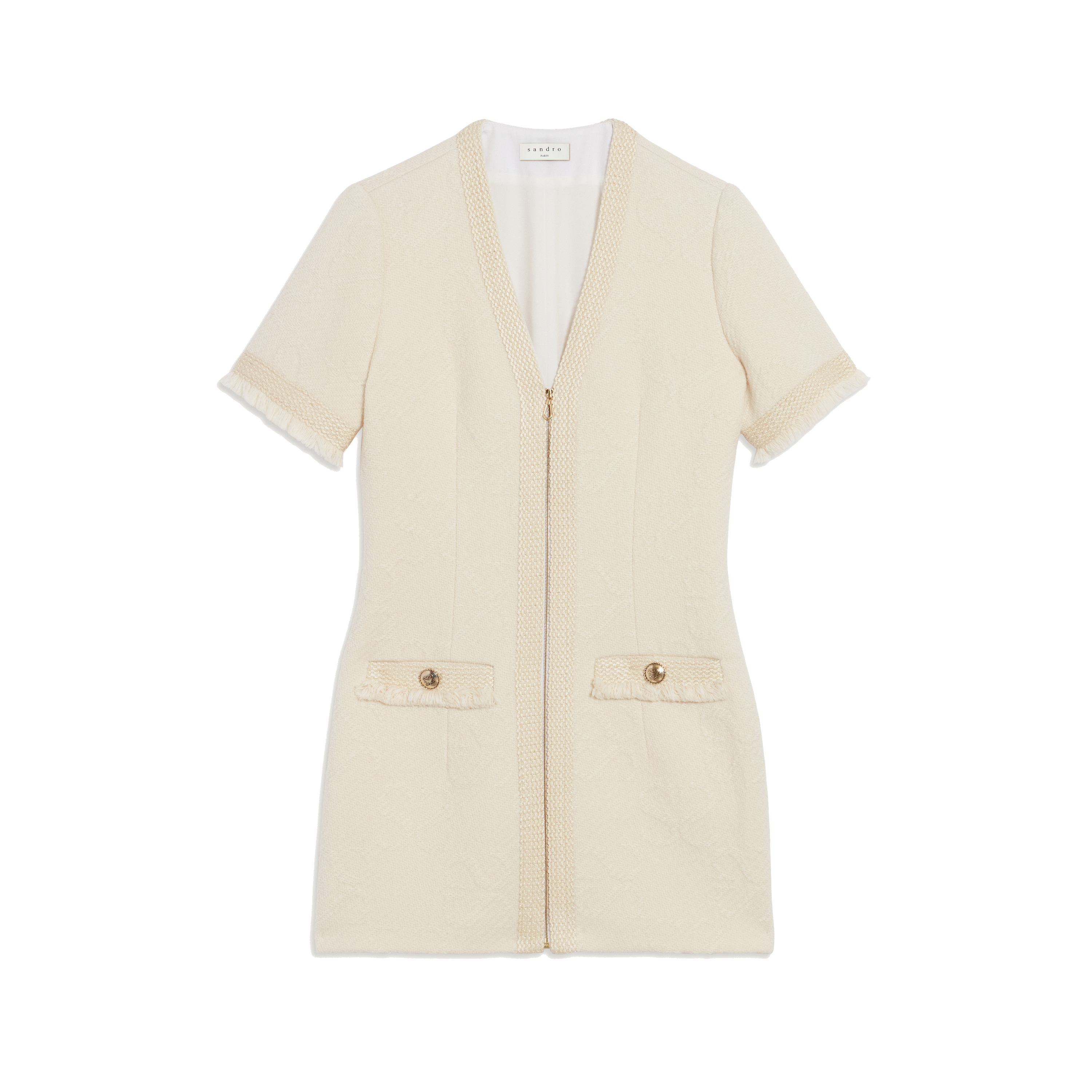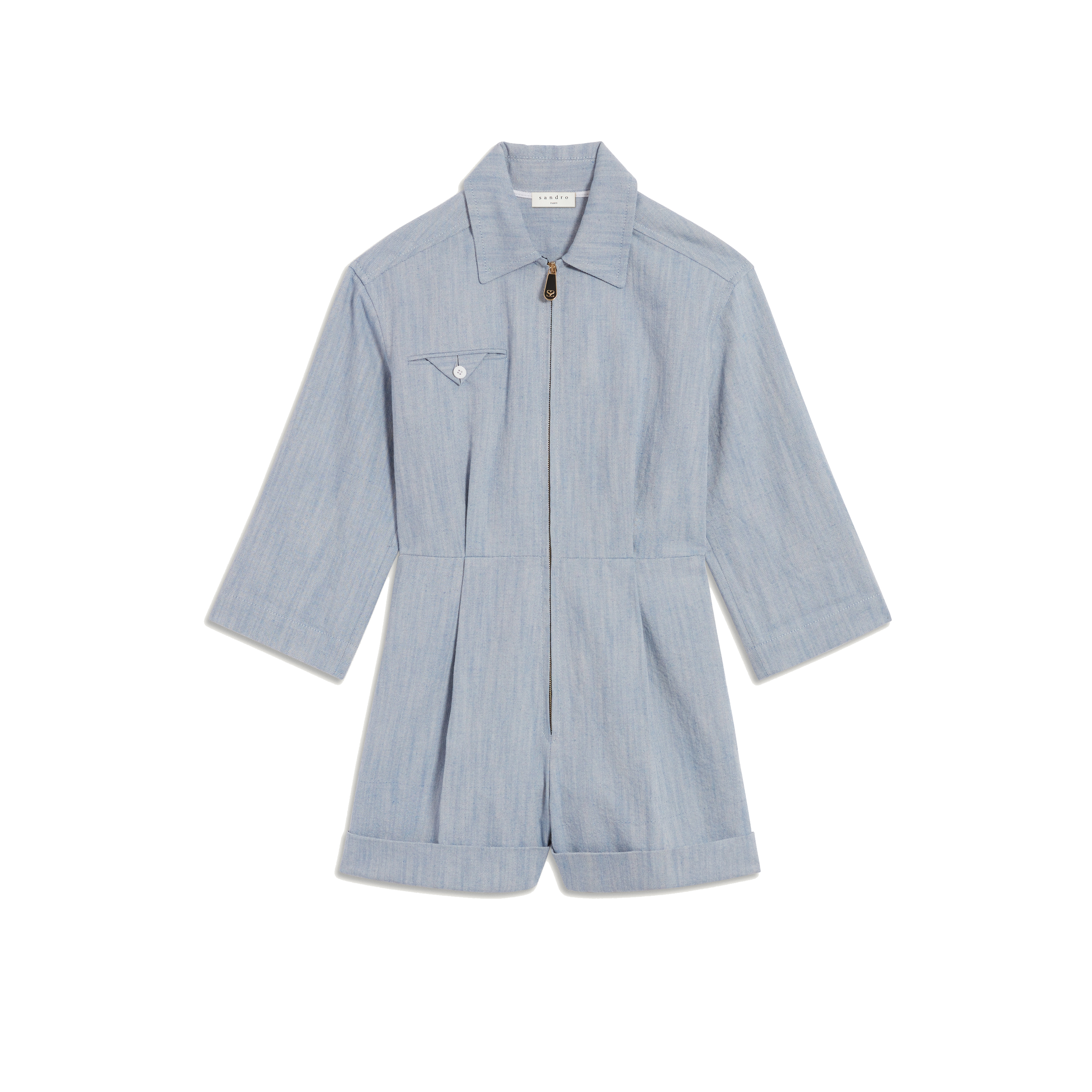 Эту палитру взяли за основу и дизайнеры Sandro. В новой коллекции можно найти актуальные вещи, неподвластные времени. Бежевый пиджак, голубые прямые джинсы, куртки из денима и топы с шортами, в которых хочется отправится в путешествие — все эти предметы гардероба с уверенностью можно миксовать и получать правильные и стильные сочетания.