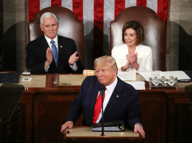 Перед своим ежегодным выступлением в Конгрессе президент раздал копии своего доклада вице-президенту США Майку Пенсу и Пелоси, заседавшим в президиуме. Соблюдая деловой этикет, спикер протянула президенту руку, но тот отказался ее пожать. В ответ на это оппонентка демонстративно порвала речь Трампа, как только тот закончил говорить. Впрочем, президент не расстроился, а лишь со свойственным ему чувством юмора «потроллил» Пелоси, выложив фотографию того самого момента в свой Instagram (запрещенная в России экстремистская организация).