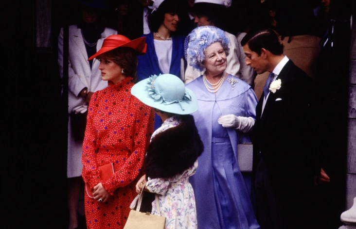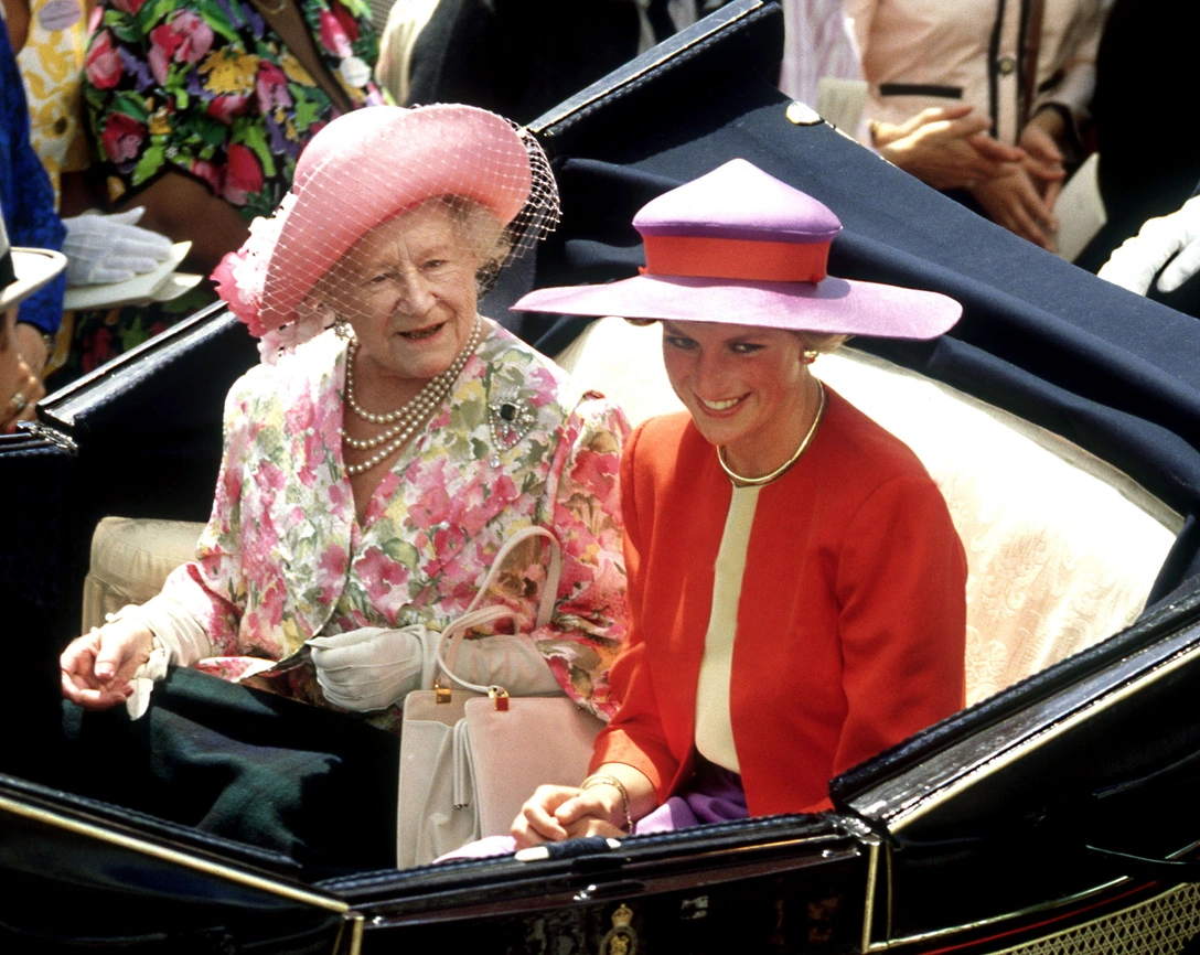 Журналист и биограф Эндрю Мортон объяснил, почему у Дианы и королевы-матери были «менее сердечные» отношения по сравнению с другими высокопоставленными лицами в Фирме. В фильме 1992 года «Диана — ее правдивая история» Мортон отметил, что Уэльская «недоверчиво держится на расстоянии» от королевы-матери, которую описывали как «матриархальную фигуру» в семье. Он пояснил, что в то время королева-мать оказывала огромное влияние на принца Чарльза, и эта привязанность была основана на взаимном обожании, из которого Диана фактически исключена.