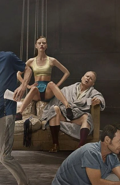 Постер к фильму «Нимфоманка» – это, можно сказать, история секса как подчинения в одной картинке. В сложносочиненном полотне секс можно рассмотреть под разными углами. На заднем плане – сам режиссер Ларс фон Триер (Lars von Trier) в роли технологичного вуайериста с камерой. В глубине кадра притаилась эксгибиционистка в классическом плаще, а в центре на диване восседает пожилой мужчина с молоденькой Лолитой. На первом плане мужчины, готовые быть верными рабами своим женщинам, и коленопреклоненная девушка, обтирающая более старшего спутника. На первом плане можно рассмотреть и сложенный из фруктов фаллический символ, довлеющий над лежащим на полу парнем.