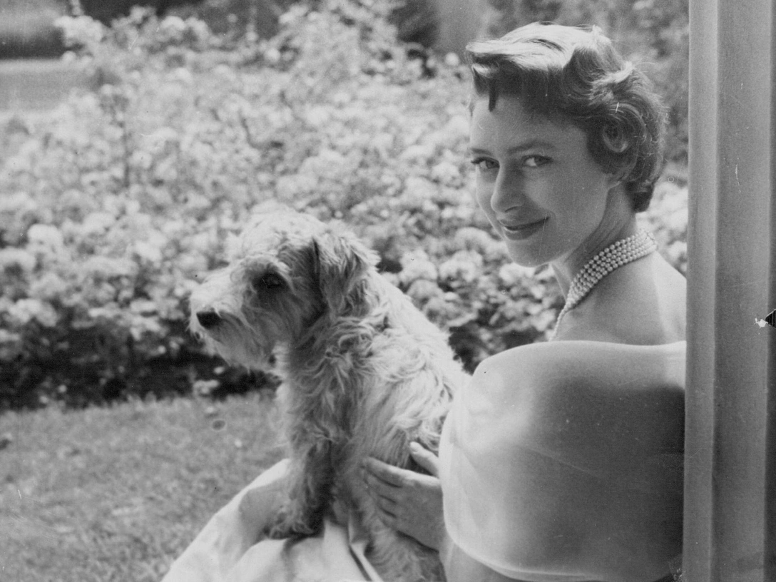 Один из самых потрясающих снимков выставки принадлежит принцессе Маргарет. Сесил Битон запечатлел молодую наследницу в светлом платье и жемчужном ожерелье на ступенях Кларенс-Хауса с ее любимым терьером по кличке Пиппин.