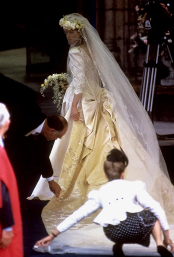 Поклонники БКС, ждавшие свадебных снимков целые сутки, не были разочарованы: как оказалось, в своем свадебном наряде невеста предпочла отдать дань уважения традициям Виндзоров и в первую очередь Ее Величеству. У бабушки принцесса позаимствовала платье, ставшее для нее свадебным - после небольшой доработки белоснежный наряд, в котором Елизавета совершила несколько торжественных выходов в 1960-х, превратился в один из лучших подвенечных туалетов королевских особ (читайте также: Из торжественного наряда в подвенечный: полувековая история свадебного платья Беатрис).