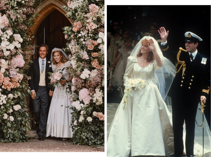 Однако несмотря на то, что свой подвенечный образ Беатрис составила на основе вещей Елизаветы, от поклонников БКС не ускользнули многочисленные отсылки к свадьбе ее родителей. Принц Эндрю и Сара Фергюсон поженились в июле 1986 года и, несмотря на развод, до сих пор считают тот день самым счастливым в жизни (читайте также: Назад в прошлое: самый трогательный момент свадьбы Сары Фергюсон и принца Эндрю). Правда, торжество сына Королевы проходило с большой помпой. Церемонию бракосочетания назначили в Вестминстерском аббатстве - месте, где венчались Елизавета и принц Филипп, а до этого - родители Ее Величества.