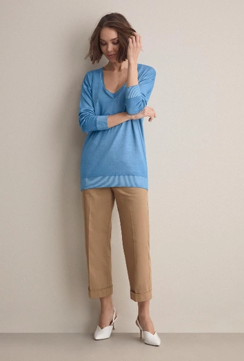 Помимо кашемира, текстильную палитру Falconeri дополняют также другие натуральные материалы. Шелк отличается своей легкостью и элегантным видом. Будь то яркая или приглушенная гамма, этот материал – олицетворение неподвластного времени стиля, а благодаря своей универсальности шелк оптимален для любых ситуаций в течение всего дня. Таким образом, Falconeri выражает свою приверженность принципам этичной и устойчивой моды и в то же время стремится вынести на новый уровень концепцию действительной, подлинной красоты, потому что «зеленая мода» уже больше не табу.