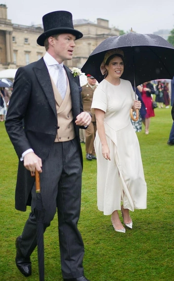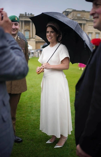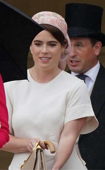 В какой-то момент принцесса Евгения славилась своими экстравагантными шляпками от Филиппа Трейси, но теперь она, вслед за сестрой, перешла на более скромные (но не менее красивые) варианты. Так, принцесса примерила потрясающий ободок с ручной вышивкой, который поддерживал общую бело-розовую гамму. На ободке были изображены розовые пионы, аккуратные листья, а завершался аксессуар крупным бантом из шелка пудрового цвета. Остальной образ также был в бело-пудровых тонах. Также Евгения — известная поклонница крупных брендов — выбрала лодочки от Valentino с узнаваемым декором из белой металлизированной кожи с пудровой каймой (читайте также: Самые богатые люди планеты: как королевские особы зарабатывают миллионы каждый день (и у кого состояние больше)). Платье Евгении светло-бежевого оттенка было чуть выше щиколотки с акцентом на талии и короткими объемными рукавами.