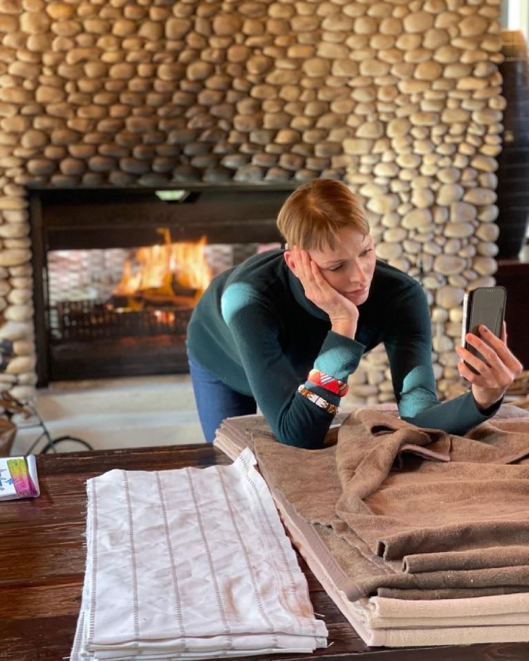 Также появились новые фотографии Шарлен, которые, кажется, призваны подтвердить, что княгиня чувствует себя намного лучше и что княжеству Монако, пережившему немало драм за свою историю, ничего не угрожает. Королевская особа поведала, что она «шьет одеяла для детских яслей», находящихся неподалеку от места, где она сейчас живет, и «проводит время с Жаки и Беллой». Княгиня уточнила, что не намерена прерывать общение со своими сыном и дочерью, даже если поддерживать его приходится по видеосвязи. На серии снимков, опубликованных в Instagram (запрещенная в России экстремистская организация) Шарлен, мама и близнецы запечатлены как раз во время видеозвонка.