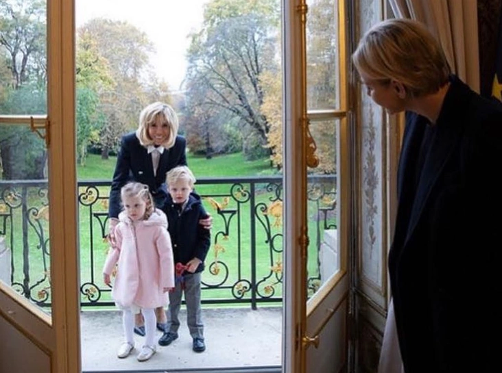 Юных дипломатов и их маму в президентской резиденции принимала сама Первая леди Франции Брижит Макрон, которая лично пожала руки гостям у входа, провела для них экскурсию по своему дому и угостила чаем. На нечетких фотографиях, опубликованных Шарлен, видно, как близнецы с любопытством осматривают Елисейский дворец и, что немаловажно, с удовольствием общаются с его хозяйкой. Компанию мадам Макрон, княгине и ее детям составил Первый пес Франции – черный метис лабрадора и грифона по кличке Немо.