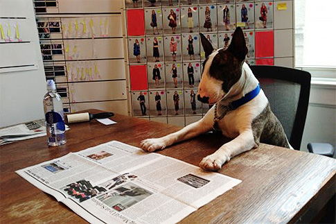 У кошки Шупетт Лагерфельд (Choupette Lagerfeld) появился серьезный конкурент в сети – бультерьер Нэвилл Джейкобс (Neville Jacobs), домашний любимец Марка Джейкобса (Marc Jacobs). Пес уже полгода ведет фотоблог в инстаграм (запрещенная в России экстремистская организация), а недавно его пригласили на работу в редакцию Love Magazine. Добродушный пес ведет фотоколонку на сайте журнала, где рассказывает о своем досуге и буднях редакции.