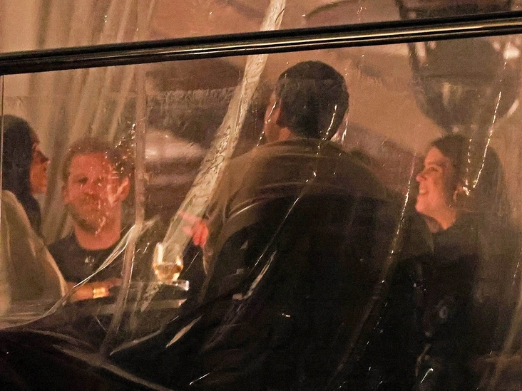Две королевские пары отправились на ужин в ресторан в Санта-Барбаре, где их заметили за ужином при свечах на балконе, защищенном навесом от непогоды. Американский таблоид TMZ даже опубликовал фотографии Сассекских и Бруксбэнков за оживленной вечерней беседой. Гарри прибыл в ресторан в синем пиджаке, а Меган — в светлом брючном костюме. На Евгении было одно из ее любимых платьев в с цветочным принтом на черном фоне, а на ее муже Джеке — синий свитер. Кузены и их супруги прибыли в заведение вместе на серебристом Range Rover.
