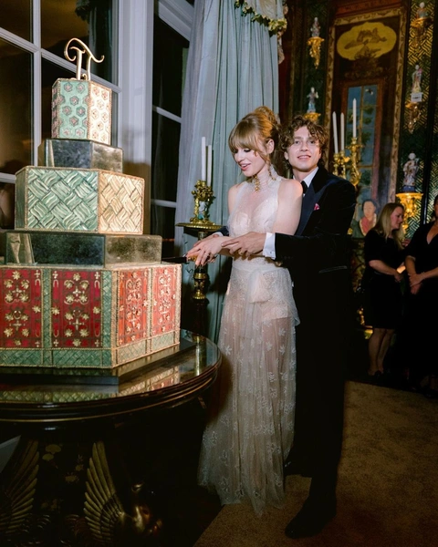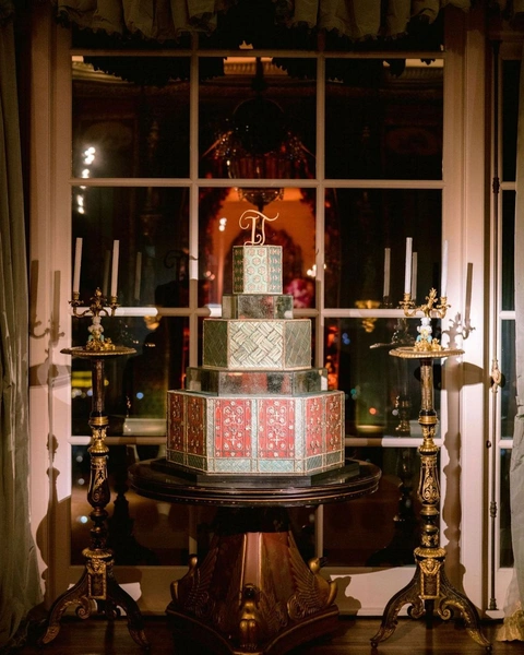 Это далеко не первый раз, когда звезда отдает предпочтение талантам Гальяно в знаковый день. К примеру, после его скандального увольнения к его услугам обратилась Гвен Стефани, которой так понравился результат, что она не хотела расставаться с нарядом (читайте также: Бережливые: звезды, которые носили свои свадебные платья и после венчания). «Большая часть платья — настоящее зеркало, — пояснил Джон в разговоре с Vogue. — Но поскольку она должна в нем ходить, мы создали материал, который напоминает настоящее зеркало, но при этом весит значительно меньше». Кстати, на торте пары тоже были элементы, напоминающие старинное зеркало.