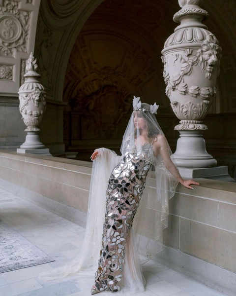Айви Гетти — правнучка знаменитого нефтяного магната Пола Гетти. Наследница одной из богатейших династий мира вышла замуж за фотографа Тобиаса Энгеля, и размах церемонии поразил публику. Праздник, длившийся целый уикенд, оказался настолько стильным, что на сайте Vogue опубликовали целую сотню снимков, на которых молодожены и их гости меняют локации и наряды, создавая один впечатляющий кадр за другим. Мисс Гетти устроила себе праздник, который мог бы потягаться с любой королевской свадьбой. Для обмена клятвами с возлюбленным она выбрала корону и по-настоящему эффектное авангардное платье, а прием был устроен в ратуше Сан-Франциско, которая выглядит не менее впечатляюще, чем монаршие дворцы.