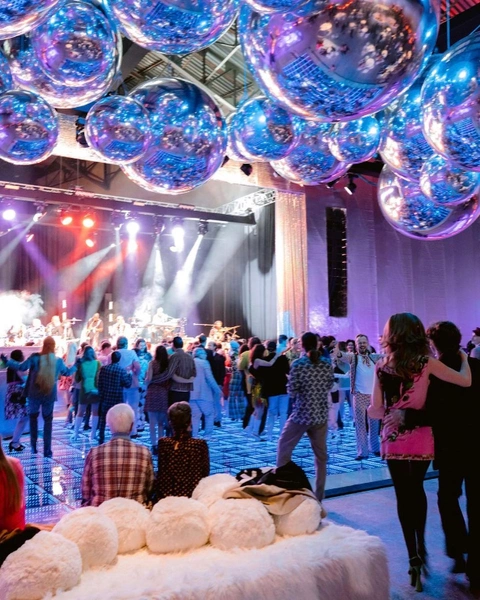 Вечерний прием с танцами провели за день до самой церемонии бракосочетания во Дворце изящных искусств, где была объявлена вечеринка в стиле модов под названием British Invasion Mod Party. Гости выдержали образы в духе 1960-х, танцы под руководством диджея Марка Ронсона перемежались с выступлением чикагской группы Earth, Wind & Fire. На невесте было короткое платье с металлизированным декором, дополненное сумочкой с очень крупными пайетками, серьгами Stephen Russell, пышной укладкой и активным макияжем с акцентом на глаза. Все в точности повторяло стиль 1960-х, в частности — фильм «Барберелла». В какой-то момент Айви сменила короткое светлое платье с воротником-стойкой и длинными рукавами на еще более короткое розовое платье без рукавов Emilio Pucci с фирменными причудливыми узорами. На ее новоиспеченном супруге в этот момент был бархатный пиджак винного оттенка и несколько украшений, дополнивших образ богемного тусовщика.