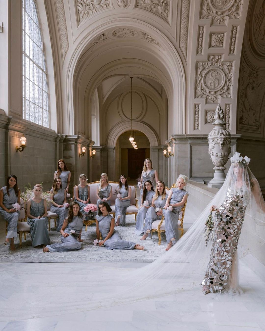 Айви Гетти — правнучка знаменитого нефтяного магната Пола Гетти. Наследница одной из богатейших династий мира вышла замуж за фотографа Тобиаса Энгеля, и размах церемонии поразил публику. Праздник, длившийся целый уикенд, оказался настолько стильным, что на сайте Vogue опубликовали целую сотню снимков, на которых молодожены и их гости меняют локации и наряды, создавая один впечатляющий кадр за другим. Мисс Гетти устроила себе праздник, который мог бы потягаться с любой королевской свадьбой. Для обмена клятвами с возлюбленным она выбрала корону и по-настоящему эффектное авангардное платье, а прием был устроен в ратуше Сан-Франциско, которая выглядит не менее впечатляюще, чем монаршие дворцы.