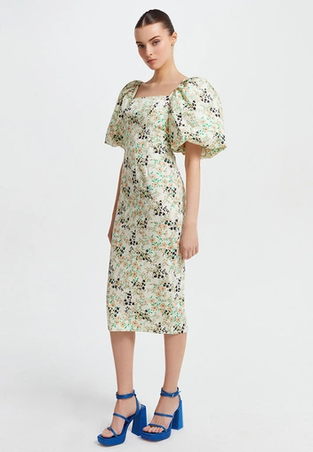Платье The Vampire's Wife стоит 1375 фунтов стерлингов. Оно отличается цветочным принтом в розово-бело-желтой гамме и ненавязчивым отблеском, переносящий незатейливый рисунок в ранг вечерних. Беатрис дополнила его преимущественно серебряными украшениями, в том числе крупными серьгами-перьями, которые почти касались плечей своей обладательницы, и оставила волосы прямыми и распущенными. На принцессе также были чёрные туфли на платформе. Выбранные ею аксессуары не всем показались подходящими.