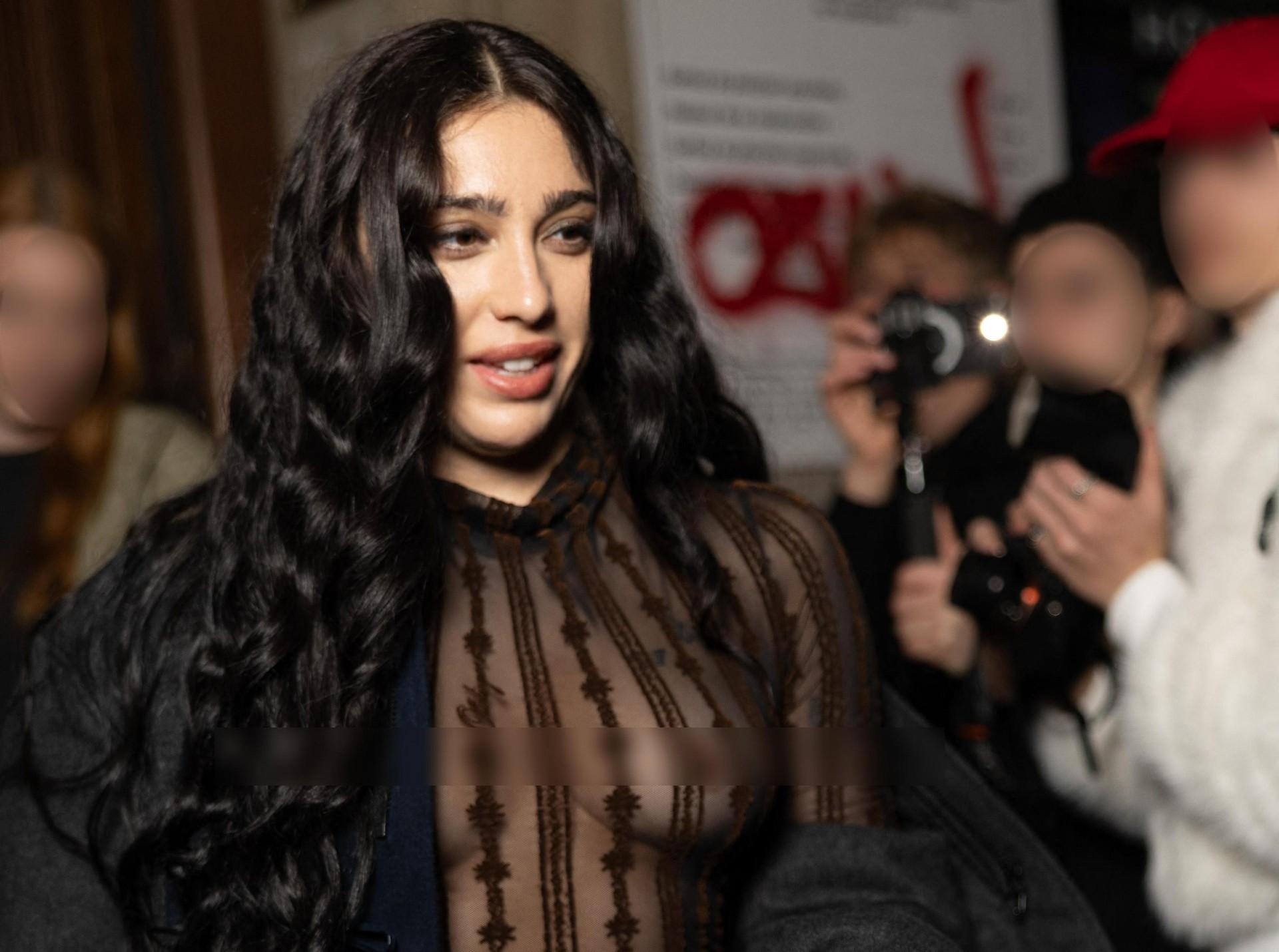 Ранее в тот же день Лурдес была гостьей на показе Ann Demeulemeester в Париже в прозрачной юбке. Она вышла на улицы Парижа в наряде с черным корсетом, украшенным заклепками.