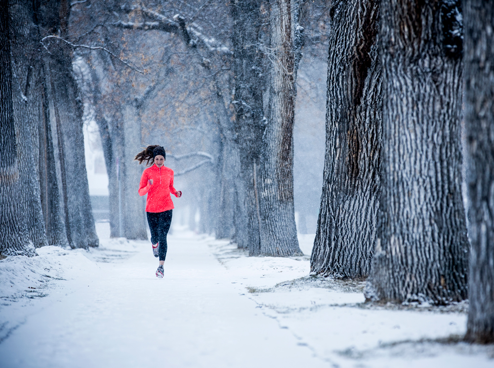Бегите по дорожке, где чистят снег и лед. Это безопасно и не потребует покупки специальных кроссовок. Достаточно летних, с более плотным носком.