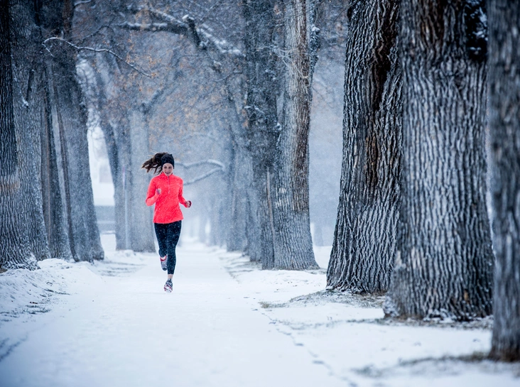Не бойтесь низких температур. Врачи допускают тренировки на открытом воздухе до -15С. Главное, активировать мышцы перед пробежкой. Сделайте динамическую разминку. Можно прямо в подъезде, пока спускаетесь по лестнице – махи руками и ногами, приседания и наклоны.