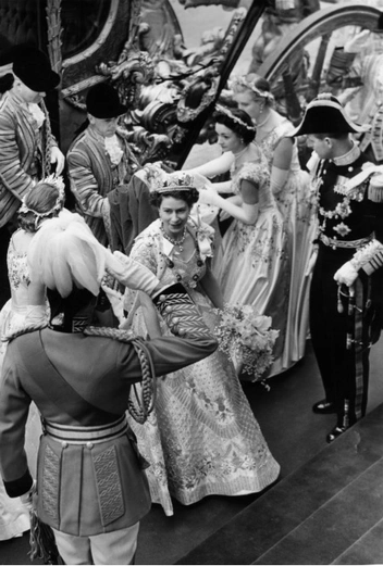 Елизавета и ее супруг, герцог Эдинбургский, прибыли в Вестминстерское аббатство в церемониальной золоченой карете, запряженной восемью лошадьми. Кстати, монарх оказалась не чужда идеям «устойчивой» моды и надевала свое роскошное коронационное платье еще шесть раз после торжественного случая, для которого его создал сэр Норман Хартвелл.