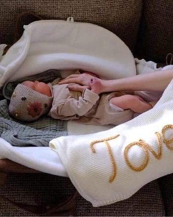 «Режим мамы», — подписала Лили свой первый публичный снимок с Туве. Фотография, судя по всему, была сделана на пленочный фотоаппарат. На кадре видно, как молодая мама с любовью смотрела на свою дочь, держа ее на руках. А сама маленькая Туве лежала, завернутая в узорчатое одеяло, и с вязаной серой шапке на голове.