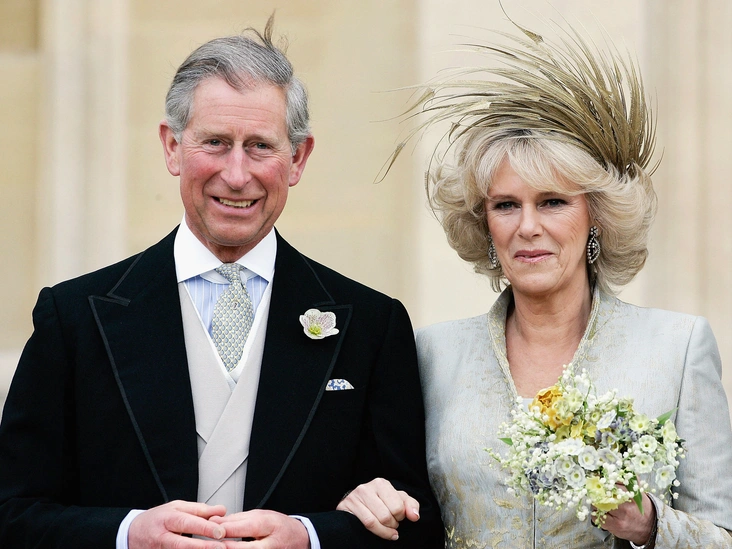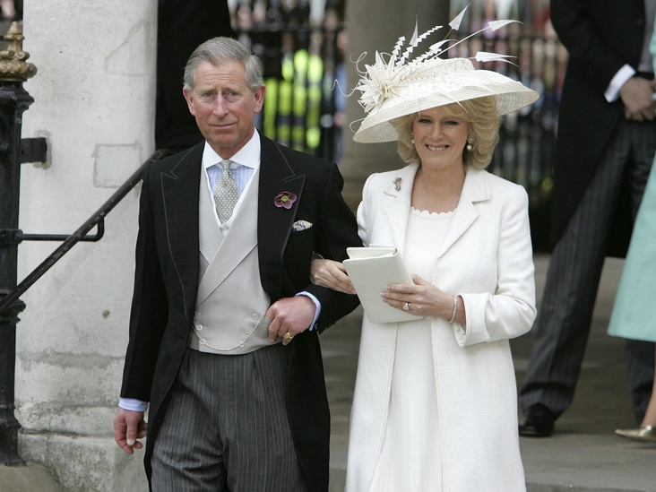 Вторая свадьба принца Чарльза была много скромнее. Так как и жених, и невеста были разведены и вступали в брак во второй раз, венчание пришлось заменить на гражданскую церемонию в Виндзорской ратуше. Присутствовало 800 человек, однако королева, как глава англиканской церкви, от появления воздержалась, хотя все же поздравила молодых во время торжественной службы, последовавшей за гражданской церемонией. Ограничения распространились и на другие традиционные атрибуты любой свадьбы. Так, например, принц Уэльский запретил делать подарки ему и Камилле в этот день.