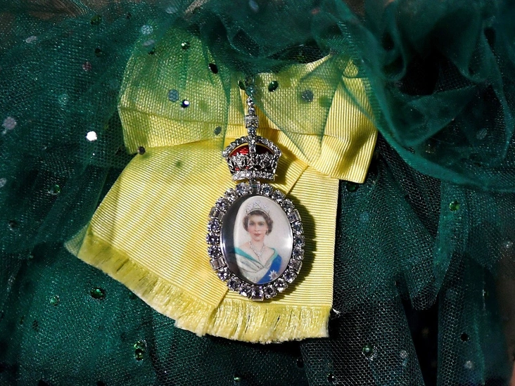Небольшая инкрустированная бриллиантами брошь, считающаяся знаком признания, присуждаемым дамам за их высокое положение в королевской семье, включает в себя изображение молодой королевы Елизаветы II в вечернем платье с лентой и звездой Ордена Подвязки. Сверху композицию, окруженную бриллиантами, венчает изображение короны Тюдоров, покрытое красной эмалью. Орден принято носить на светло-желтой ленте.