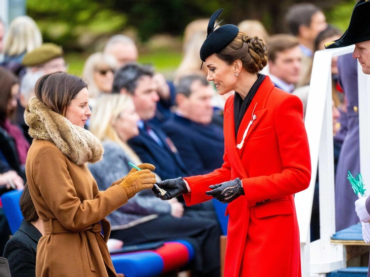 В среду 41-летняя принцесса Уэльская вместе с мужем появилась в Виндзоре на параде в честь Дня Святого Давида, отдав дань уважения 1-му батальону валлийской гвардии. Кэтрин была замечена алом пальто Alexander McQueen, замшевых сапогах Gianvito Rossi, шляпе Juliette Botterill и с сумкой Mulberry Amberley. Также на принцессе бьли серьги Daisy Heritage марки Asprey. Однако взгляды королевских поклонников привлек совсем другой сентиментальный аксессуар. На Ее Высочестве были особенные перчатки, которым, по уверениям королевских поклонников, уже 17 лет.