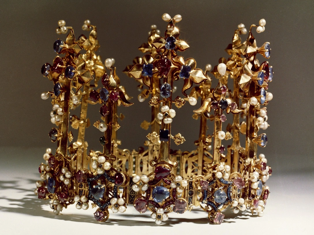 Все благодаря тому, что корона покинула пределы Англии до революции. При этом драгоценность неоднократно подвергалась починкам и переделкам (последняя датируется 1925 годом), но все-таки сохранила свой средневековый флер.