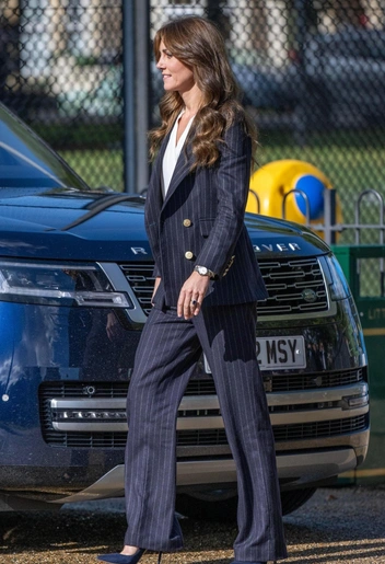 Это подтверждают последние выходы Кэтрин — как упоминалось выше, в брючных костюмах. 3 октября Кейт и Уильям посетили общественный центр в Кардиффе — поездка была приурочена к 75-летию со дня прибытия круизного лайненра, который перевез мигрантов в Королевство. Уэльская надела темно-синий брючный костюм в полоску и белую блузку, а из украшений — только небольшие часы и помолвочное кольцо (читайте также: Тайный смысл или безвкусица: почему Кейт Миддлтон обожает дешевые украшения). Ранее, 26 сентября Кейт посетила текстильную мануфактуру, основанную в 1783 году. Принцесса также надела брючный костюм, но уже изумрудный, и минимум украшений.