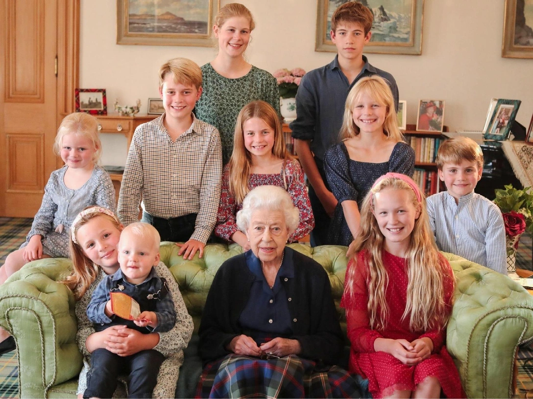 Так, на снимке мы видим внуков королевы, которые сидят вокруг своей «ган-ган» (так принц Джордж называл Елизавету II, пока не мог выговорить «granny»). На диване с королевой сидит дочь Питера Филлипса Саванна, а также Мия Тиндолл, которая держит своего младшего брата Лукаса. За королевой в первом ряду расположились Лена Тиндолл, принц Джордж и принцесса Шарлотта, а также принц Луи и Айла Филлипс. Завершили фото леди Луиза Виндзор и Джеймс Уэссекский — дети Эдварда и Софи Эдинбургских.