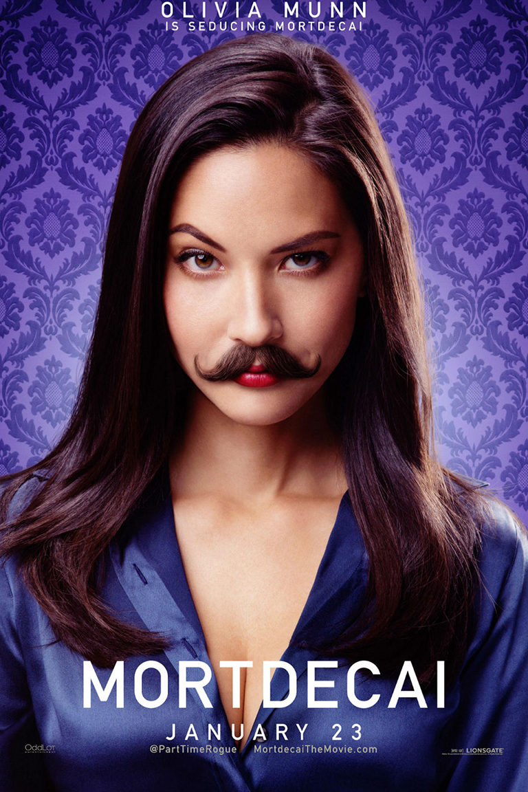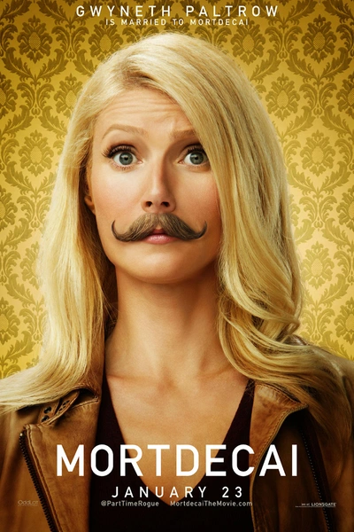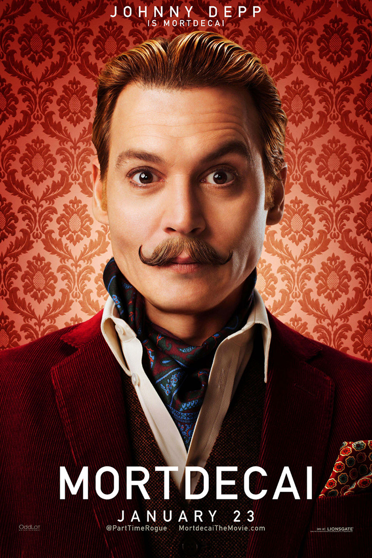 Сегодня появились первые официальные постеры картины, на которых все герои изображены с усами, похожими на те, что носит сам Чарльз Мордекай. Каждый актер снят на разном фоне: пиджак Джонни Деппа винного цвета отлично гармонирует с такого же оттенка фоном, Гвинет Пэлтроу с широко распахнутыми глазами снята на желтом, голубоглазый Юэн Магрегор позирует перед голубыми обоями, а Оливия Манн пытается повторить гримасу Джонни Деппа на синем фоне.