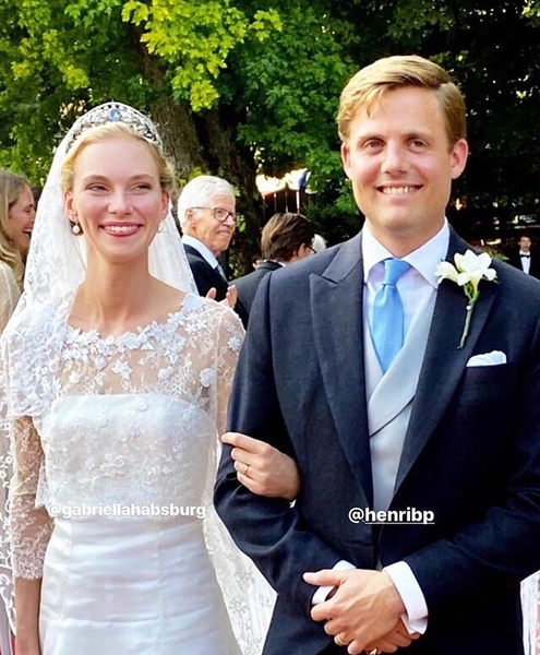 Теперь очередь дошла до еще одной пары — это принц Генри Бурбон-Пармский и эрцгерцогиня Габриэлла Австрийская, которые были помолвлены уже около трех лет и даже успели произвести на свет дочь. Впрочем, на скромную роспись в мэрии в коктейльном платье и минималистичной шляпке, как у Элеоноры фон Габсбург, это похоже не было. Влюбленные сыграли свадьбу 12 сентября в австрийском замке Трацберг.