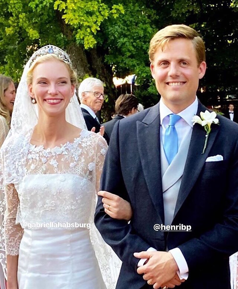 Теперь очередь дошла до еще одной пары — это принц Генри Бурбон-Пармский и эрцгерцогиня Габриэлла Австрийская, которые были помолвлены уже около трех лет и даже успели произвести на свет дочь. Впрочем, на скромную роспись в мэрии в коктейльном платье и минималистичной шляпке, как у Элеоноры фон Габсбург, это похоже не было. Влюбленные сыграли свадьбу 12 сентября в австрийском замке Трацберг.