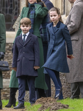 Вся семья была в подходящих друг к другу образах: Кейт надела зеленое пальто и клетчатый шарф, в тон которого были галстуки Джорджа и Луи, а также пальто Шарлотты.