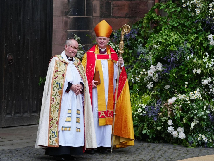 Торжество прошло в старинном Честерском соборе — именно тут который век женятся и выходят замуж герцоги и герцогини Вестминстерские. И без того величественное здание украсили цветами и растениями из поместья жениха, которое находится неподалеку.