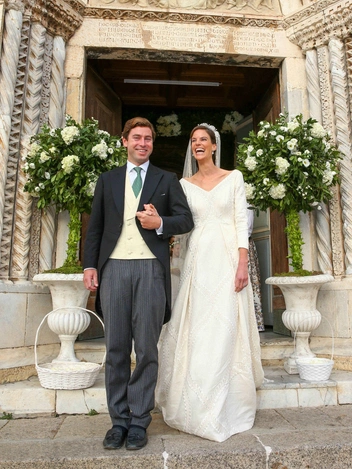 Венчание влюбленных прошло в соборе Орбетелло в Капальбио. На церемонию прибыли принцесса Алессандра, принц Кристиан и принцесса Екатерина Ганноверские, Мария Лаура Бельгийская, принц Лоренц Бельгийский, Жан-Кристоф Наполеон и его жена Олимпия, София Габсбургская и принц Мариано Гуго де Виндиш-Грец, принцесса Мафальда Гессенская, принц Жан Люксембургский, мать жениха, родители невесты и ее старшая сестра Мария Анунциата со своими супругом.