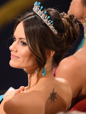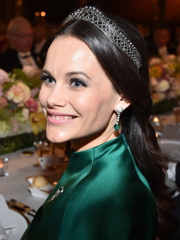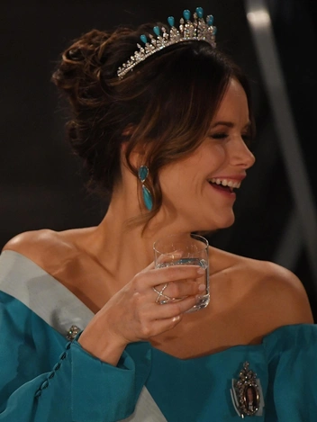 Впрочем, возможность менять камни в свадебной тиаре принцессы Софии ювелиры все-таки сохранили. На церемонии вручения Нобелевской премии в 2019 году принцесса Ее Высочество была в своей диадеме с бирюзой, венчающей композицию. В дополнение были изготовлены такие же серьги, а оттенок выбранного принцессой платья вторил камням.