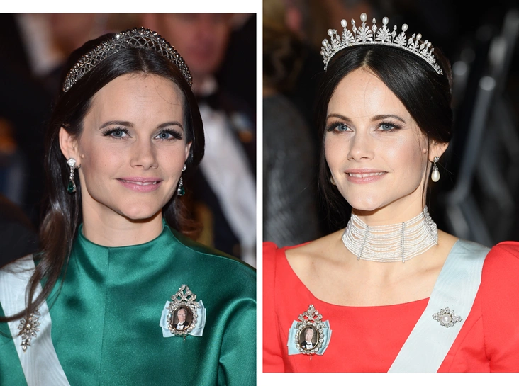 Когда шведская модель вышла замуж за принца Карла Филиппа и стала частью королевской семьи, ее новоиспеченные родственники подарили девушке особую диадему. Это украшение в стиле ар-деко с изумрудом и бриллиантами. Когда-то оно было ожерельем королевы Сильвии, но позже превратилось в тиару и было преподнесено Софии. Позже основу немного скорректировали, чтобы улучшить посадку диадемы на голове своей хозяйки.