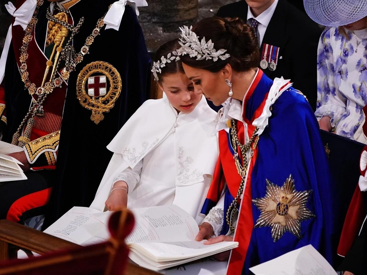 Тот день был триумфальным не только для Карла III, но и для принцессы Шарлотты. Тогда поклонники королевской семьи увидели, как подросла их любимица, и как величественно она держит себя на публике. А еще, Шарлотта и ее мама Кэтрин надели одинаковые платья и тиары Alexander McQueen — так что в модном доме стало на одну высокопоставленную клиентку больше (читайте также: Кутюрье принцессы Уэльской: 20 самых стильных нарядов Кейт Миддлтон от Alexander McQueen, которые навсегда войдут в историю).