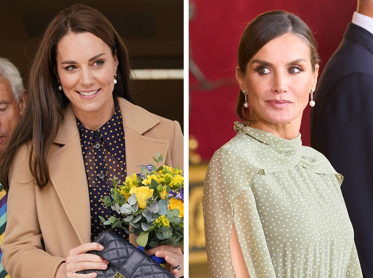 Любопытно также, что это не первый раз, когда поклонники и эксперты замечают сходство стиля испанской королевы со стилем женщин из британской королевской семьи. Так, например, в октябре этого года Летиция появилась на премьере оперы в Мадриде в платье от Miphai с очень глубоким вырезом на спине. А подобные вырезы — характерный маркер стиля принцессы Дианы, которая не раз эпатировала публику нарядами с обнаженной спиной. К слову, любила Диана и polkadot, так что вполне возможно, что на этот раз Летиция сделала модный реверанс не только герцогине Кэтрин, но и ее покойной свекрови (читайте также: Эта вещь разбивает сердца: самая скандальная модная привычка, которую Летиция переняла у принцессы Дианы).